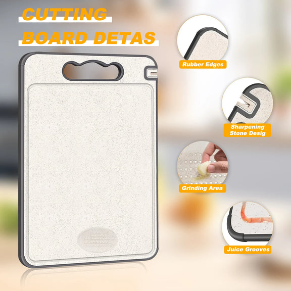 【MULTI-FUNCTIONAL KITCHEN TOOL】More Than Just a Cutting Board, This All-In-One Tool Features an Integrated Knife Sharpener for Quick Blade Maintenance, and A Garlic Grinding Area on The Wheat Straw Side for Added Convenience. Whether You'Re Chopping, Slicing, or Preparing Meals, This Cutting Board Serves Multiple Purposes in One Compact Design